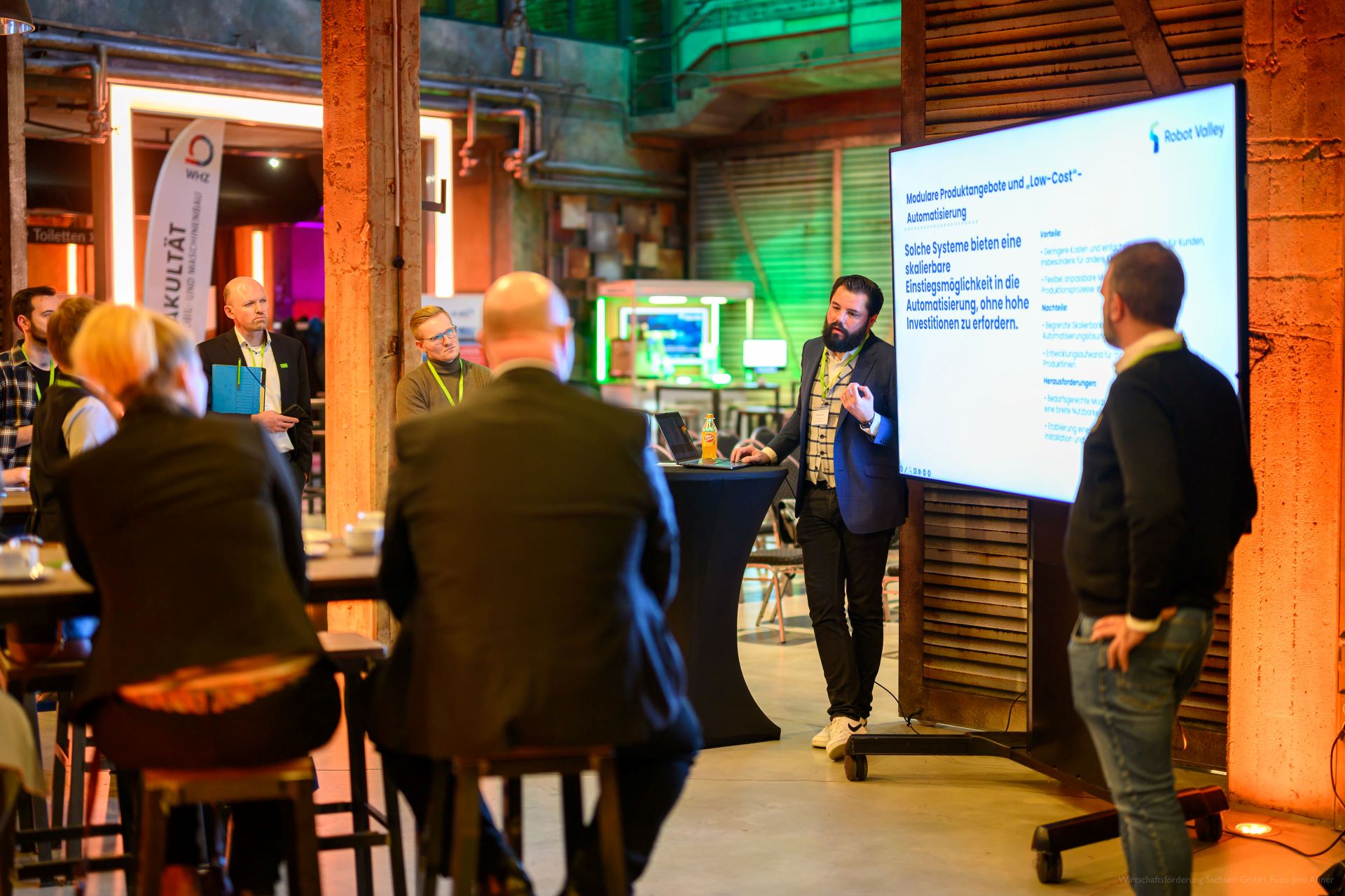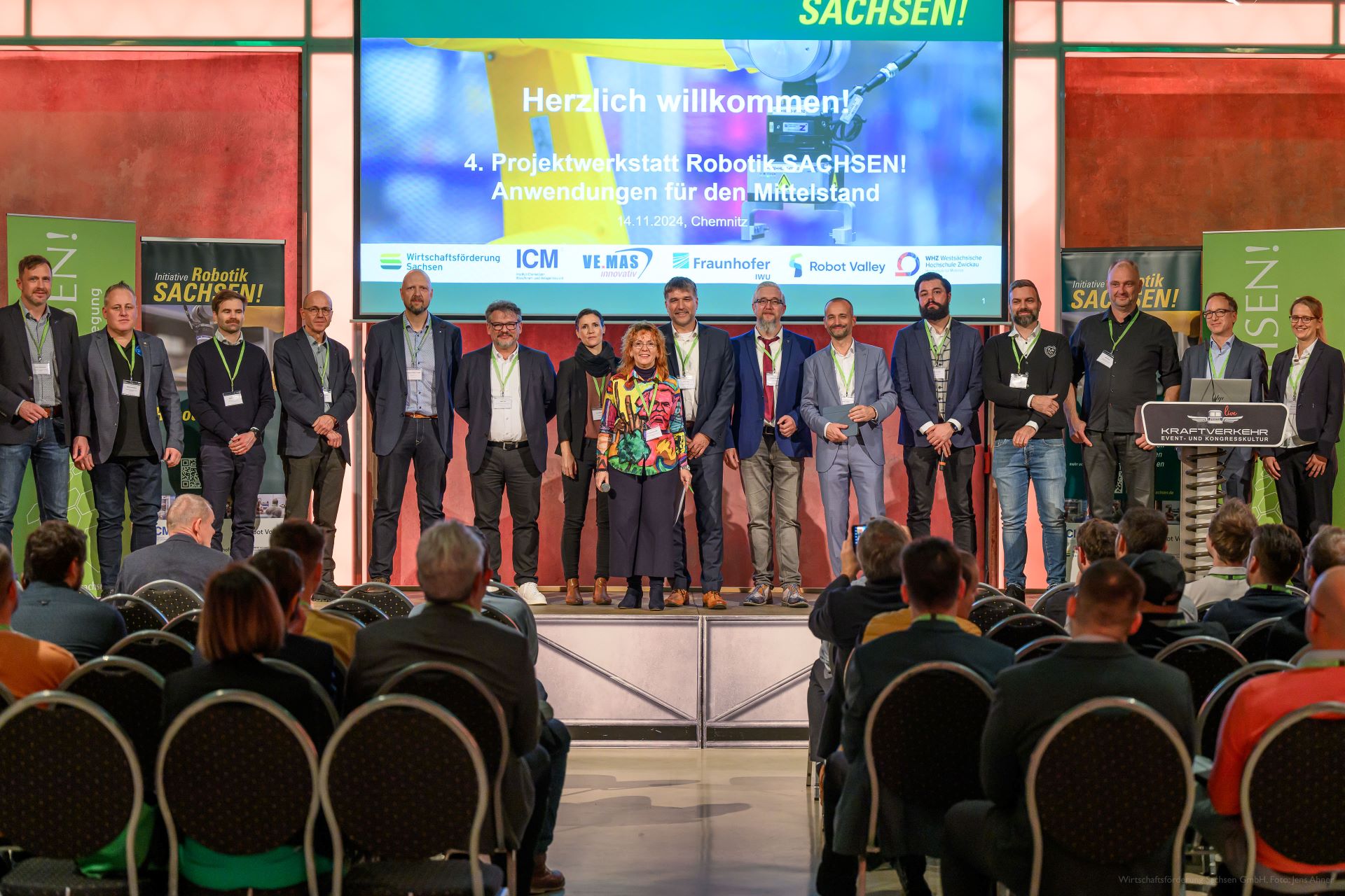 Mit großem Interesse nahmen am 14.11.2024 ca. 120 Gäste aus Politik, Industrie und Wissenschaft an der 4. Projektwerkstatt Robotik im Kraftverkehr Chemnitz teil, die als Gemeinschaftsevent der Wirtschaftsförderung Sachsen GmbH, dem ICM - Institut Chemnitzer Maschinen- und Anlagenbau e.V., Robot Valley Saxony, dem Fraunhofer IWU, der Westsächsischen Hochschule Zwickau und VEMASinnovativ organisiert wurde.