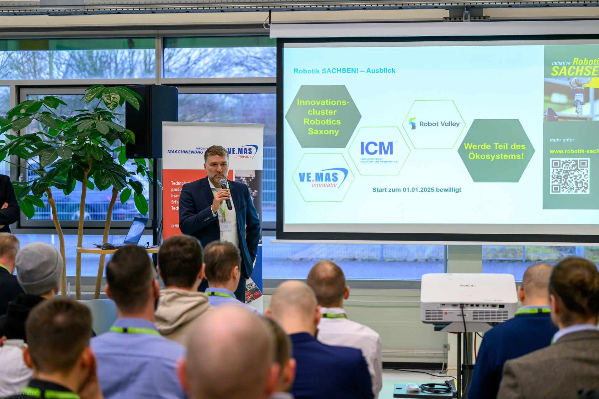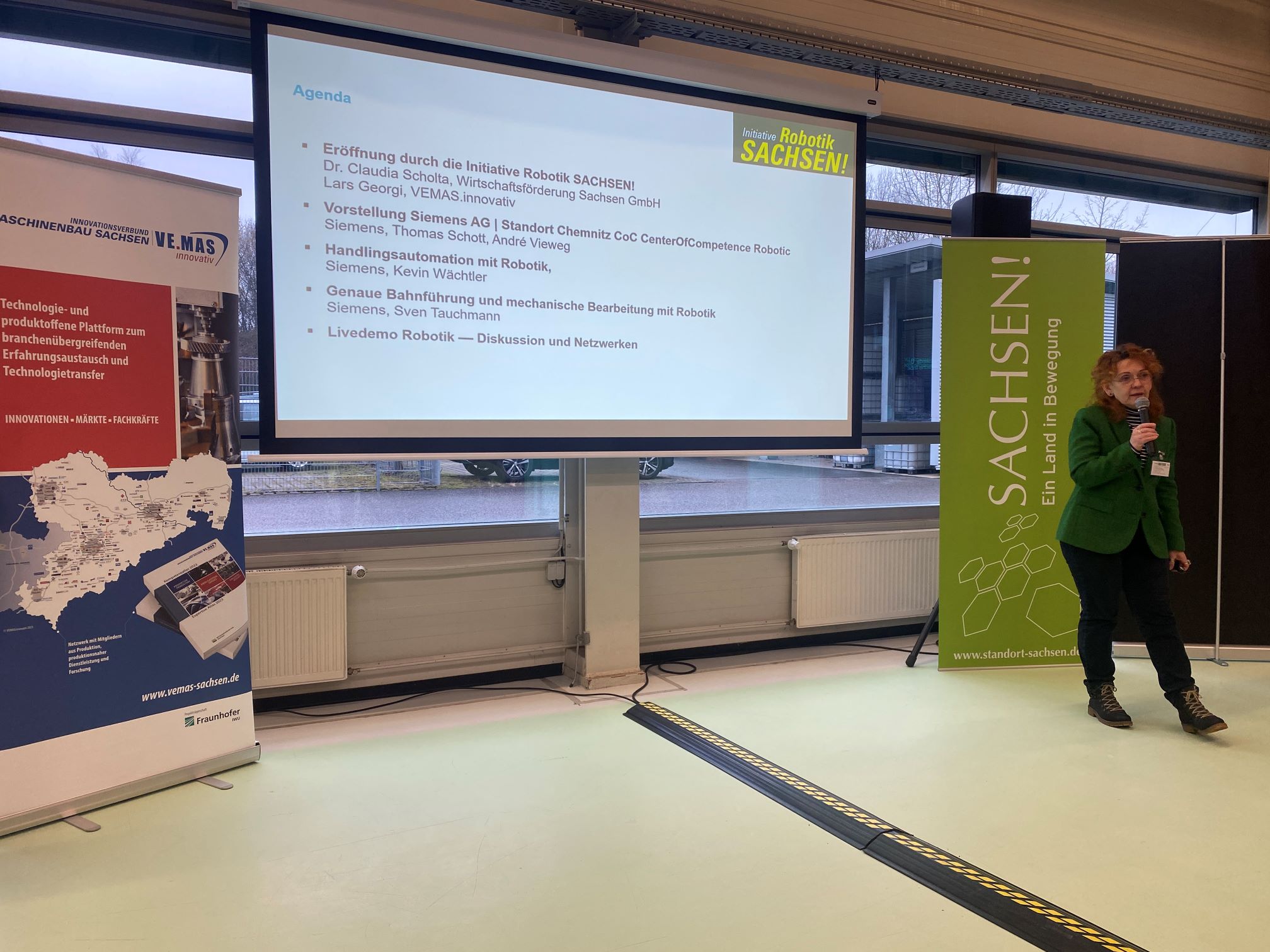 Stellvertretend für die Initiative "Robotik SACHSEN! - Robotik für den Mittelstand" haben wir gemeinsam mit der Wirtschaftsförderung Sachsen GmbH, die Gäste begrüßt und einen Ausblick auf das entstehende Innovationscluster "Robotics Saxony" gegeben.