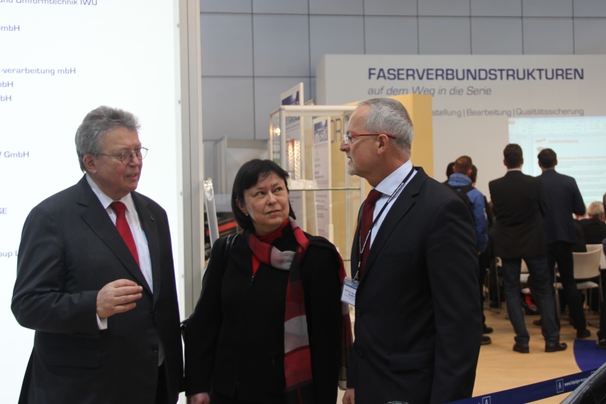 Erstmalig konnten in direkter Nähe zum VEMAS-Gemeinschaftsstand interessierte Besucher Exponate und Projektarbeiten auf einer Demonstrationsfläche mit integriertem Forum unter dem Motto "Faserverbundstrukturen auf dem Weg in die Serie" bestaunen und mit Fachexperten zum Thema diskutieren.