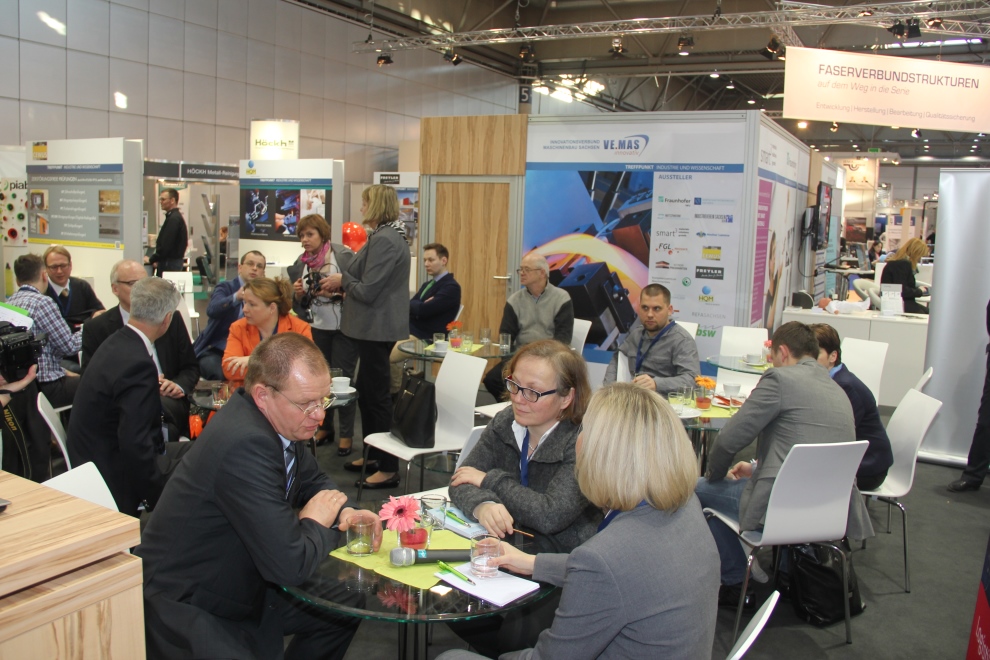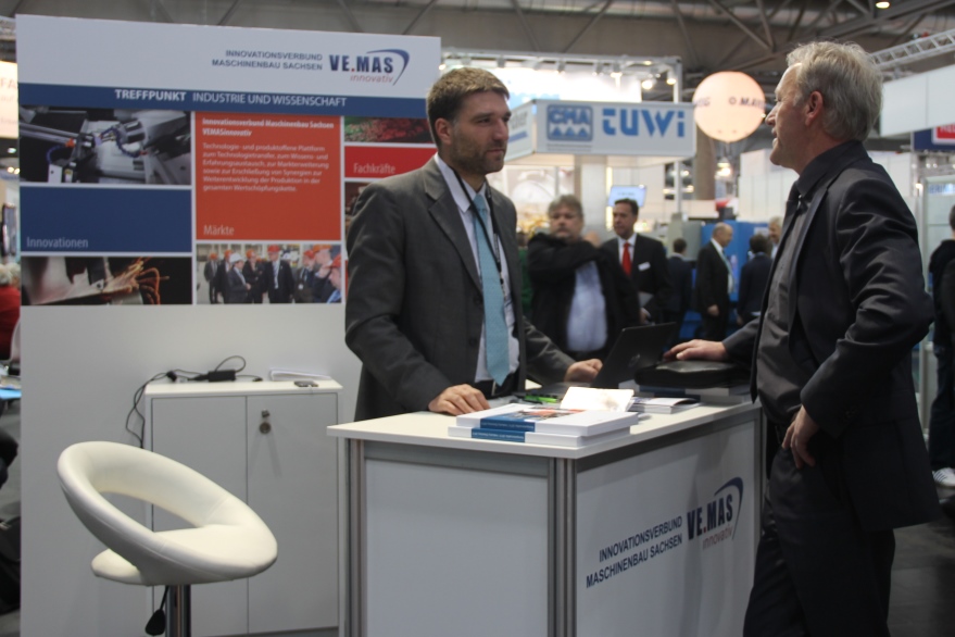 Vom 24.-27.02.2015 ging das Messedoppel Intec/Z in die 15. Runde und wieder organisierte der Innovationsverbund Maschinenbau Sachsen VEMASinnovativ den Gemeinschaftsstand "Treffpunkt Industrie und Wissenschaft" auf dem 18 Unternehmen, Netzwerke, Forschungseinrichtungen und Institutionen ihr Leistungsangebot präsentierten: das Fraunhofer-Institut für Werkzeugmaschinen und Umformtechnik IWU mit dem smart³ e.V. und dem Netzwerk FGL, das Institut für Werkzeugmaschinen und Produktionsprozesse der TU Chemnitz, die Netzwerke Strahlschmelzen, Presshärten und Innenhochdruckumformen des Fraunhofer IWU, der Industrieverein Sachsen 1828 e.V. mit vier seiner Mitgliedsunternehmen, die Anchor Lamina GmbH, die CEWUS Chemnitzer Werkstoff- und Oberflächentechnik GmbH, die FREYLER Industriebau GmbH und die HQM induserv GmbH. Zudem waren auch das Kompetenzzentrum Maschinenbau Chemnitz/Sachsen e.V., das Bildungswerk der Sächsischen Wirtschaft gGmbH und die REFA Sachsen GmbH vertreten. Als internationaler Austeller präsentierte sich das Kompetenzzentrum Maschinenbau der Republik Tatarstan „KNIAT“. Der Freistaat Sachsen wurde durch die Wirtschaftsförderung Sachsen GmbH vertreten.