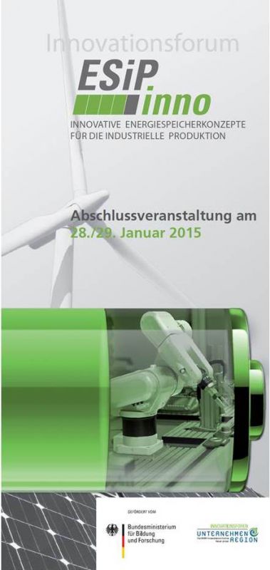 Abschlussveranstaltung Innovationsforum „Innovative Energiespeicherkonzepte für die industrielle Produktion – ESiPinno“, 28./29.01.2015