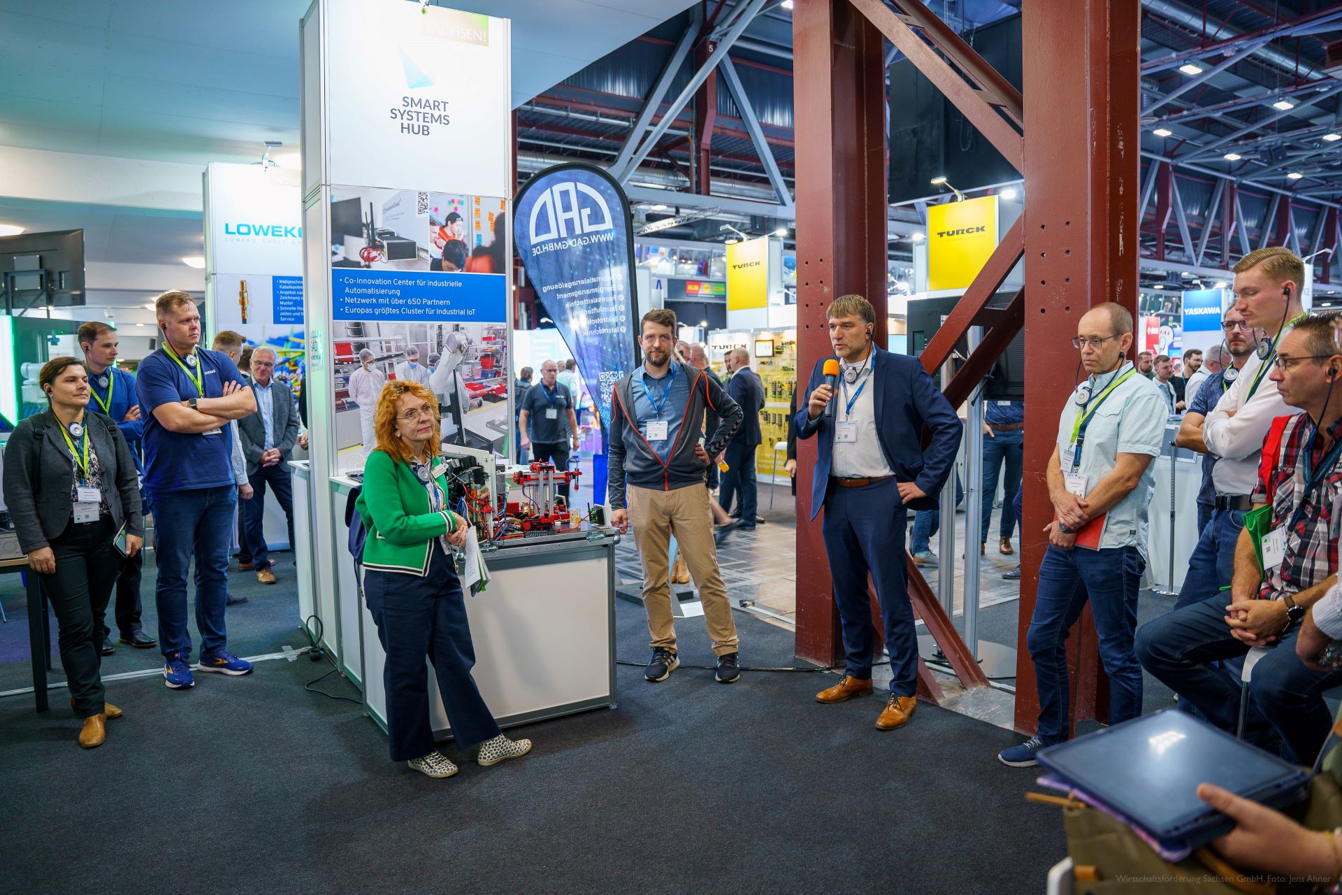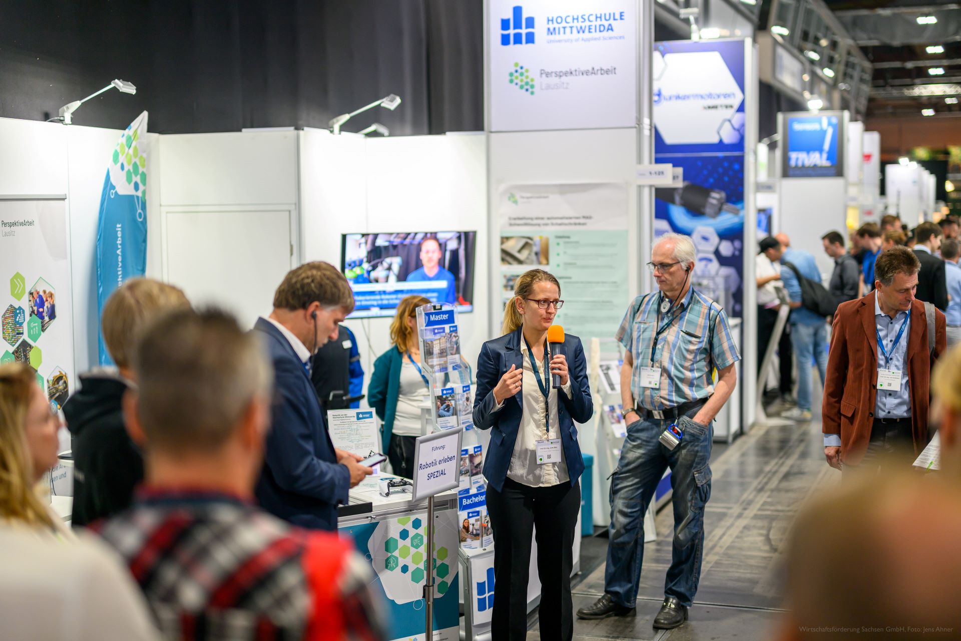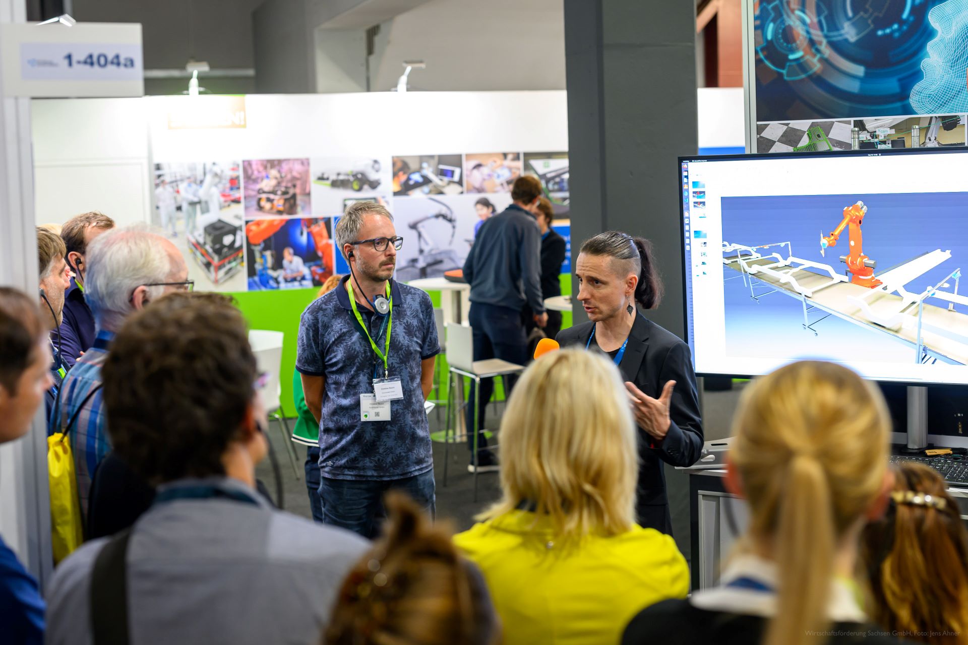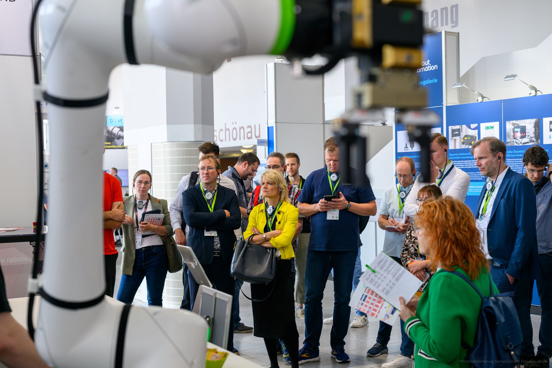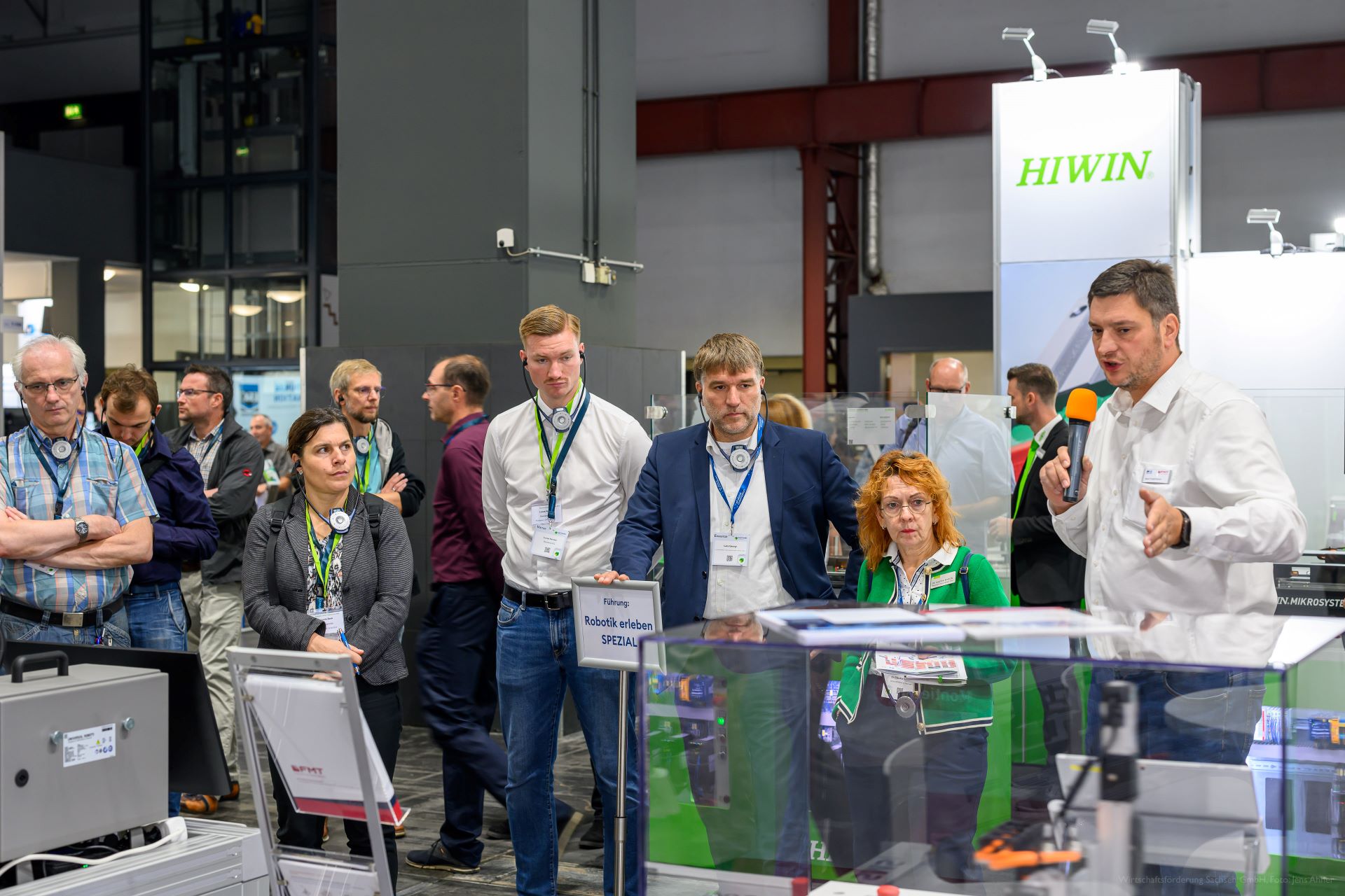 > Zwei geführte Robotik-Rundgänge am Sächsischen Gemeinschaftsstand sowie zu FMT Flexible Montagetechnik GmbH, Industrie-Partner GmbH, Deutscher Robotik Verband, Hochschule Mittweida, Hydrive Engineering GmbH, ICM - Institut Chemnitzer Maschinen- und Anlagenbau e.V., LSA | Automation, GETT.GERMANY und Beas Technology GmbH mit insgesamt 50 Teilnehmenden