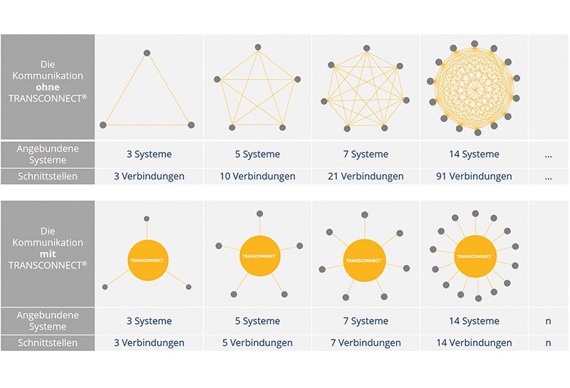 Die Low-Code Integration Platform TRANSCONNECT® ist seit mehr als 25 Jahren eine der führenden Branchenlösungen für große und mittelständische Unternehmen im Industriesektor. Sie ermöglicht es Organisationen, verschiedene Systeme, Datenquellen und Anwendungen effizient miteinander zu verbinden. TRANSCONNECT® zeichnet sich durch die einzigartige Fähigkeit aus, in Echtzeit eine zentrale Schnittstelle für Daten aus dem Top-Floor und Shop-Floor in der Wertschöpfungskette bereitzustellen. TRANSCONNECT® unterstützt sowohl etablierte als auch individuell entwickelte Schnittstellen und ermöglicht die nahtlose Konvertierung von Daten bei gleichzeitigem Betrieb dieser Schnittstellen. Unsere Projektteams verfügen über umfangreiches Know-how in der Beratung, Umsetzung und dem nachhaltigen Betrieb von Digitalisierungsprojekten, um unsere Kunden bei ihren Automatisierungsvorhaben zu unterstützen. Unsere Werte umfassen Kundenzufriedenheit, Transparenz und Technologieführerschaft. Wir setzen nicht blind auf Trends, sondern investieren in den tatsächlichen Nutzen unserer Kundinnen und Kunden.