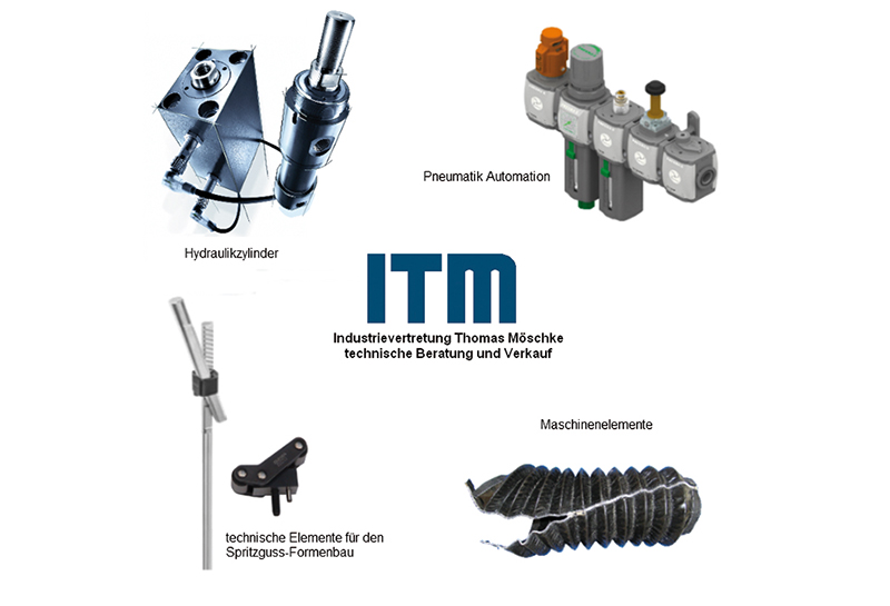 Firmenvertretung in den Bereichen: Hydraulikzylinder (Anlagenbau mit Partnern); kleine hydraulische Hubsysteme + kpl. höhenverstellbaren Tischbausatz; Pneumatik-Automationstechnik (Anlagenbau mit Partnern); Maschinenschutzelemente; patentierte Funktionsteile für den Kunststoff-Formenbau; Kapazitätenvermittelung im Werkzeug-, Formen-, Vorrichtungs- und Maschinenbau; Kunststoffteilefertigung