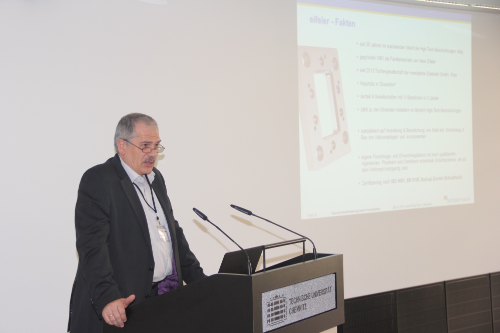 Eröffnet wurde die Veranstaltung von Prof. Dr.-Ing. Dieter H. Weidlich, welcher bereits 2014 ein Innovationsforum, damals zum Thema "Innovative Energiespeicherkonzepte für die industrielle Produktion", geleitet hat und der aktuellen Projektleiterin PD Dr.-Ing. habil. Verena Kräusel. Im Anschluss referierten Industrievertreter, darunter auch Vertreter des Kernteams zu Einsatz, Anforderungen und Herausforderung im Bereich Presshärten.