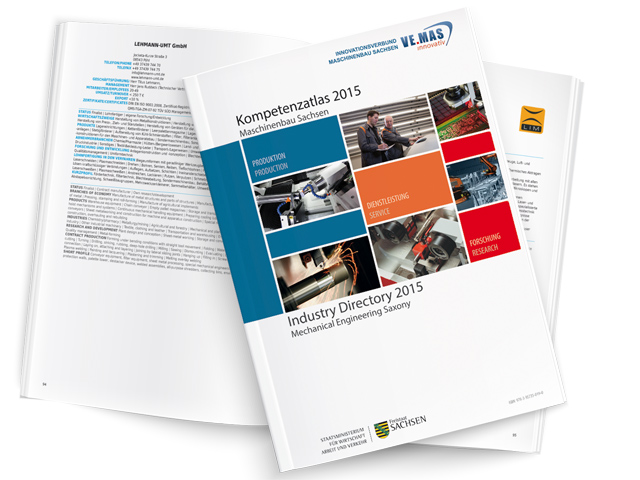 Unter dem Titel "Kompetenzatlas Maschinenbau Sachsen 2015" gibt VEMASinnovativ mit Unterstützung des Sächsischen Staatsministeriums für Wirtschaft, Arbeit und Verkehr und in enger Kooperation mit der Industrie- und Handelskammer Chemnitz bereits in der 4. Auflage dieses umfangreiche Nachschlagewerk mit Unternehmensdaten zu Leistungsangebot der Unternehmen und Forschungseinrichtungen heraus.